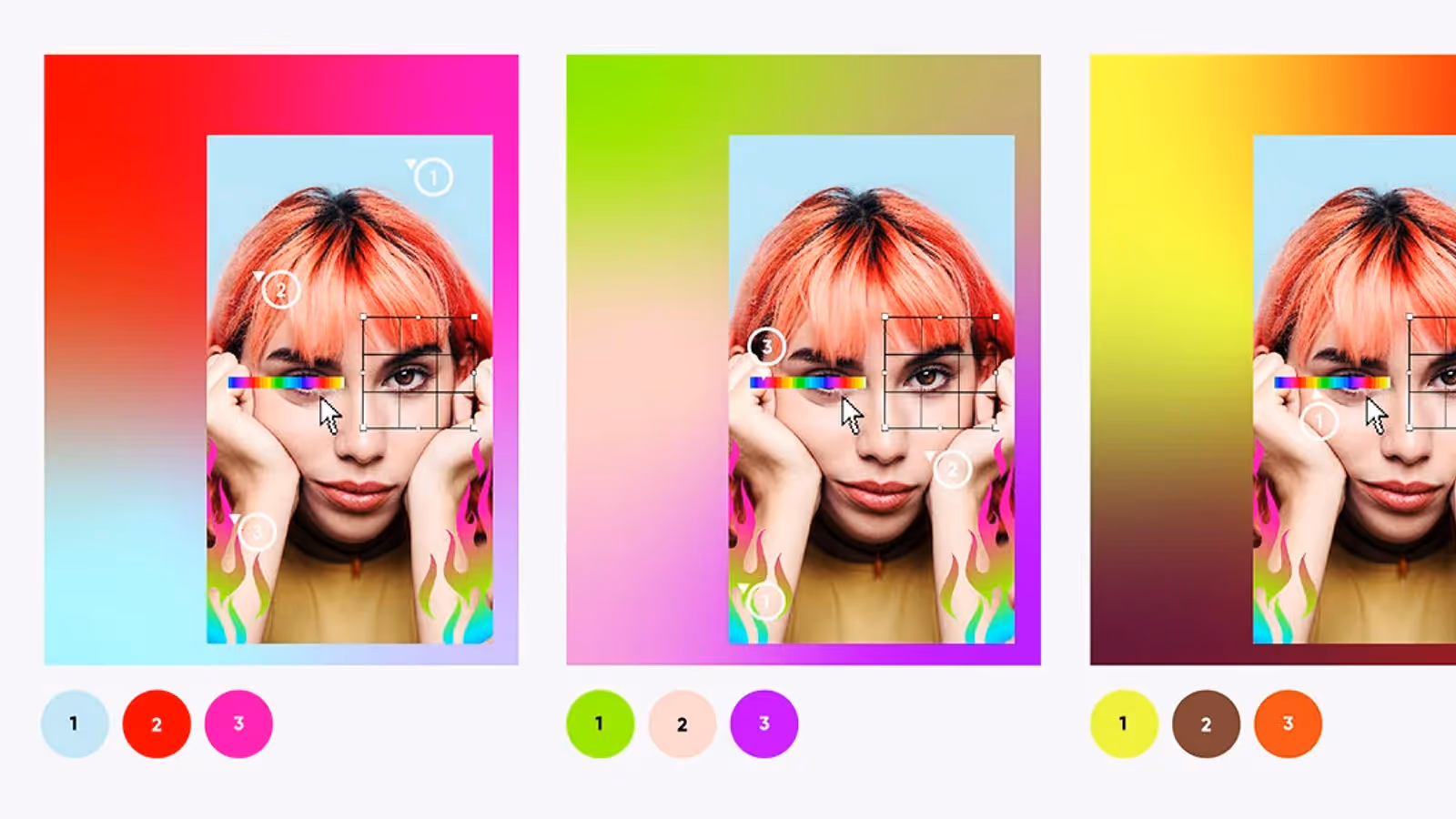 Our ‘frame’ is a bespoke background gradient that is created by borrowing three prominent colors from each creation we feature. That way, every design has a unique look while staying consistent overall.